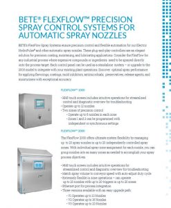 • FLEXFLOW 2000 PREMIUM SPRAY CONTROLLER Provides ultimate system flexibility by managing up to 20 spray nozzles in up to 20 independently controlled spray zones. Auto-adjust duty cycle to match conveyor speed in each zone.